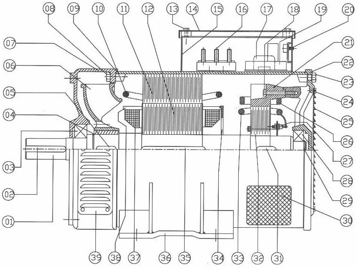 | 19 | Elektronik Voltaj Regulatorü | 39 | Rotor Sargı Destek Pimi |